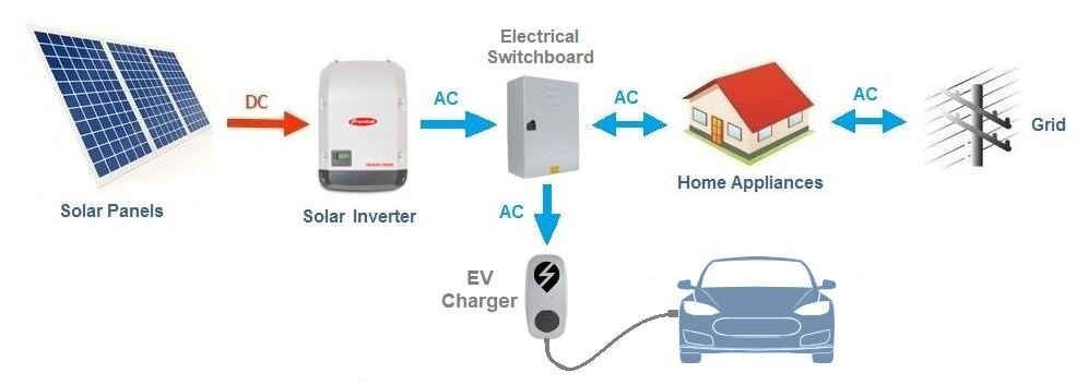 Hiljutine tehnoloogia on kombineeritud päikeseinverter ja EV-laadija, mida saab laadida otse katuse päikesepatareist. Laadija integreerimine päikeseinverteriga on nutikas lahendus, mis välistab vajaduse eraldi EV laadija järele koos täiendava juhtmestiku ja võimalike elektriuuendustega. Ainus miinus on see, et inverter tuleb paigaldada garaaži või sõiduki lähedale.